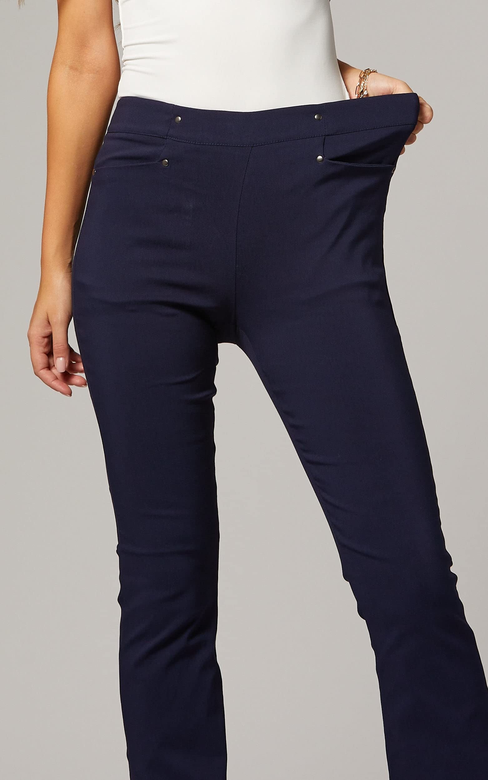 Conceited Navy Blue Premium Women's Stretch Ponte Pants - Wear to Work - Dressy Leggings - X-Large - MEDP-2382-Navy-XL