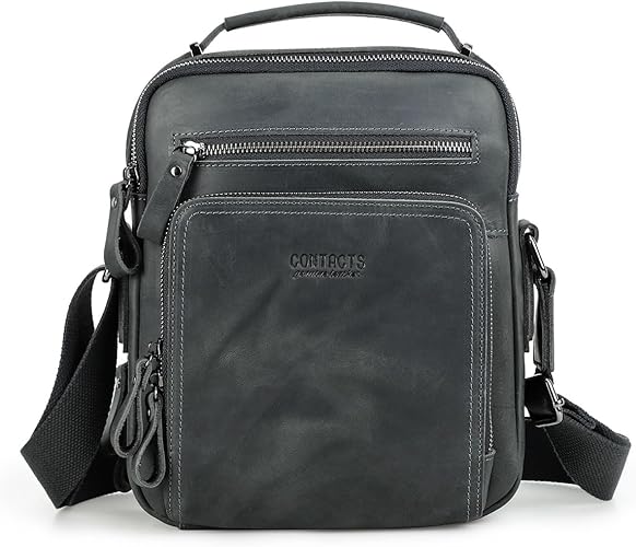 Contacts Small Messenger bag for Men Leather Man Purse Business Travel Crossbody Shoulder Bag Handbag Fit up to 9.7" iPad (Grey)