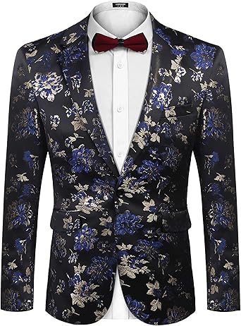 COOFANDY Mens Floral Tuxedo Jackets Slim Fit Suit Blazer Jacket for Christmas Dinner Party Prom Wedding