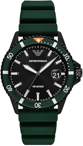 Emporio Armani Three-Hand Date Green Silicone Watch (Model: AR11464)