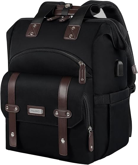 FALANKO Laptop Backpack For Women, Work Doctor Teacher Nurse Wide Open College 15.6 Inch Laptops Backpack Purse with USB Charging Port, Travel Water Resistant RFID Computer Bag for Men Women Black