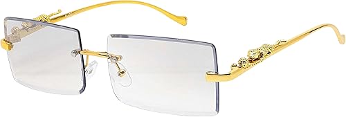 Flawless Rimless Rectangle Vintage Sunglasses Fashion Frameless Tinted Glasses for Women Men