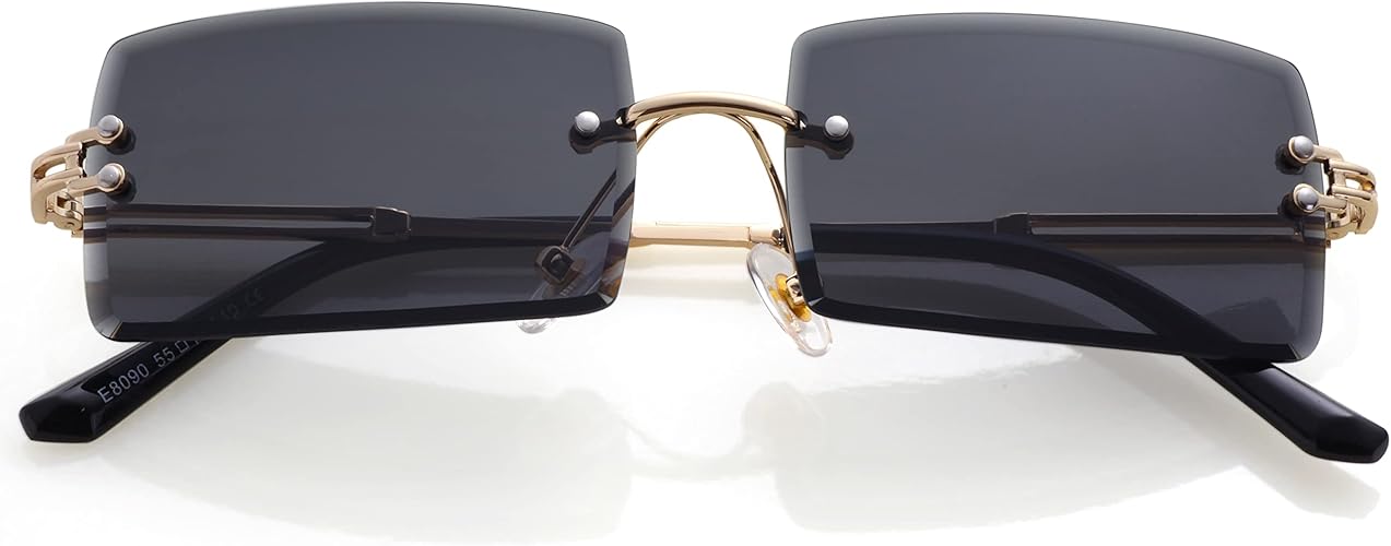 Frameless Rectangle Sunglasses for Men Women Small Rimless Sun Glasses Shades UV400 Protection