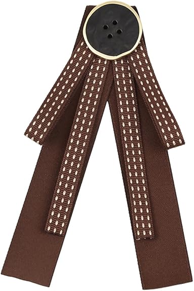 French retro Ribbon Bow Tie Brooch Pins for Women Girls Brown Plaid Uniform Pre-Tied Bowknot Corsage Party Ceremony Accessories