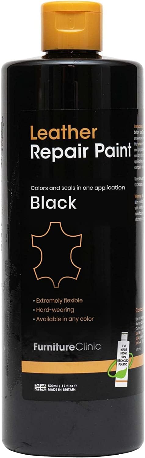 Furniture Clinic Leather Repair Paint & Dye | Self Seal Colorant for Quick and Easy Leather Repair | Suitable for Leather Sofas, Leather Car Seat, Shoes, Handbag, and More (Black, 1.7oz)