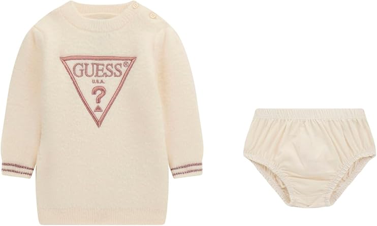 GUESS baby-girls Long Sleeve Fuzzy Sweater Dress and Jersey Panties