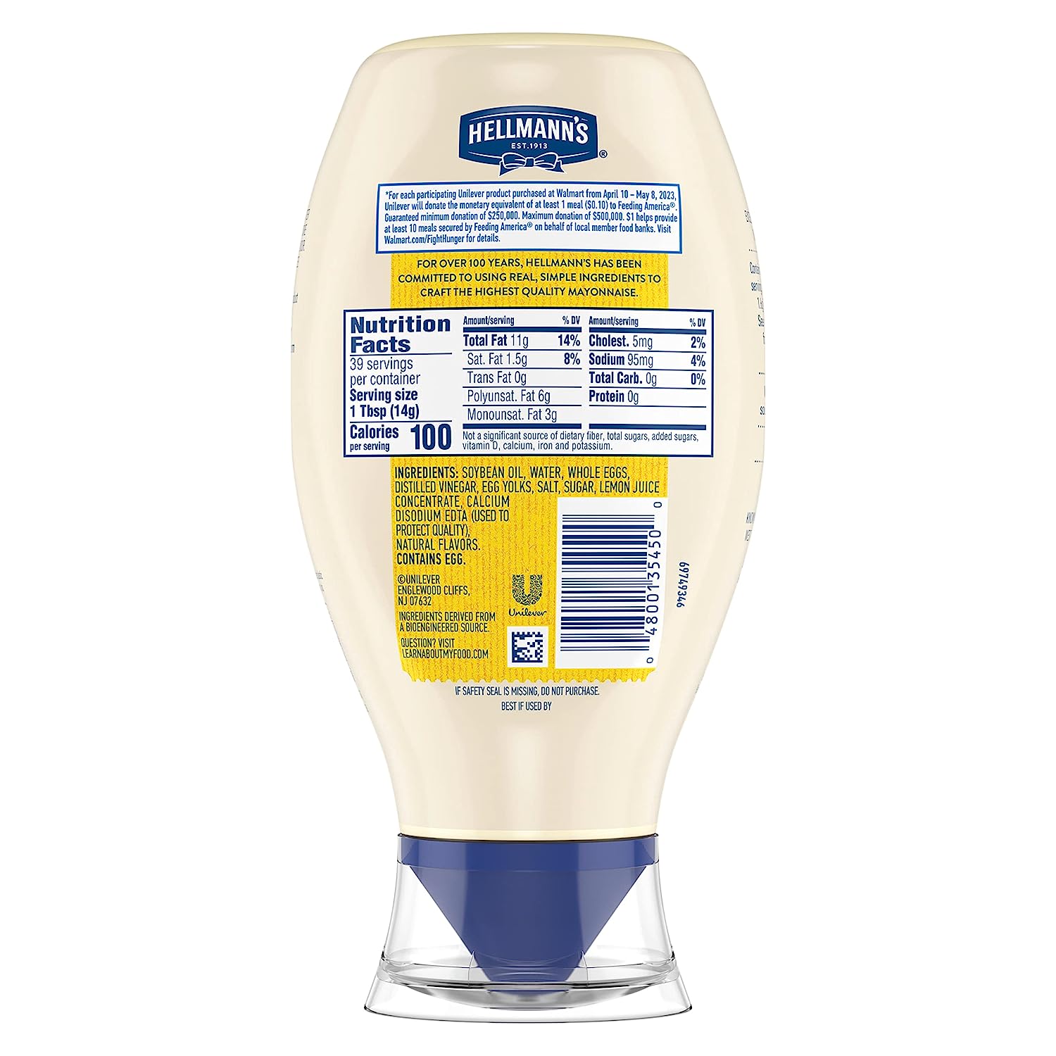 Hellmann's Real Mayonnaise is proudly made with real, simple ingredients like cage-free eggs, oil and vinegar. We know that to really "Bring Out The Best," we need to do more than just taste great. That’s why our delicious Blue Ribbon Quality Mayonnaise is made with real eggs, oil and vinegar sourced from trusted American farms. And it comes in a convenient real mayo squeeze bottle that makes it easy to add it to your favorites. Even after 100 years, we’re still committed to using premium ingredients to craft the highest quality mayonnaise. It's simple. We use the finest, real ingredients in Hellmann's Real Mayonnaise. In fact, we use 100% cage-free eggs and are committed to 100% responsibly sourced soybean oil. Our authentic mayonnaise is rich in Omega 3-ALA (contains 650mg ALA per serving, which is 40% of the 1.6g Daily Value for ALA), and is also gluten-free and certified kosher. And nothing beats the taste of real mayo. It’s the ideal condiment for spreading on sandwiches and wraps, grilling juicy burgers, mixing creamy dips, and preparing fresh salads. Use it to make outrageously delicious meals like our Parmesan Crusted Chicken and Best Ever Juicy Burger, and even turn your Thanksgiving leftovers into a deliciously creamy meal with our Turkey Casserole. Hellmann’s is known as Best Foods West of the Rockies.