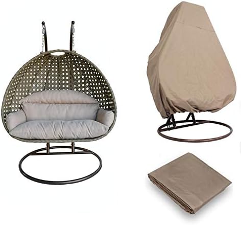 Island Galeïë Luxury 2 Person Outdoor, Patio, Hanging Wicker Swing Chair ((2 Person) X-Large-Plus, Latte Rattan/Latte Cushion with Free Cover $128 Dollar Value)