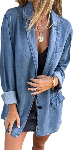Jean Jacket for Women Lightweight Loose Fit Denim Blazer Shirt Jackets Summer Oversized Work Button Jacket