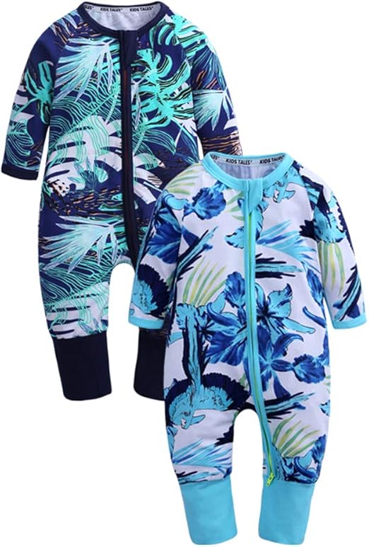 Kids Tales 2 Pack Infant Footed Handed Zipper Romper Pajamas Baby Long Sleeve Playsuit Toddler Cartoon Graphic Bodysuit