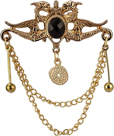 Knighthood Dragon Protected Precious Black Stone with Hanging and Gold Medal Brooch Lapel Pin, Suit Coat for Women Men's Accessories