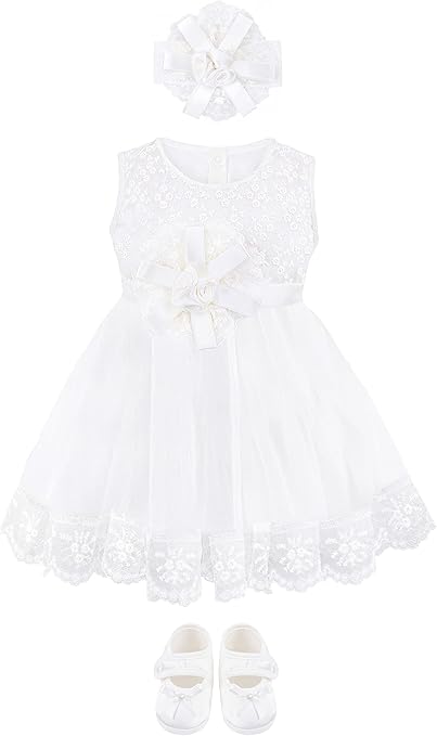 Lilax Baby Girl Newborn Christening Baptism Lace White Dress Gown 4 Piece Deluxe Set