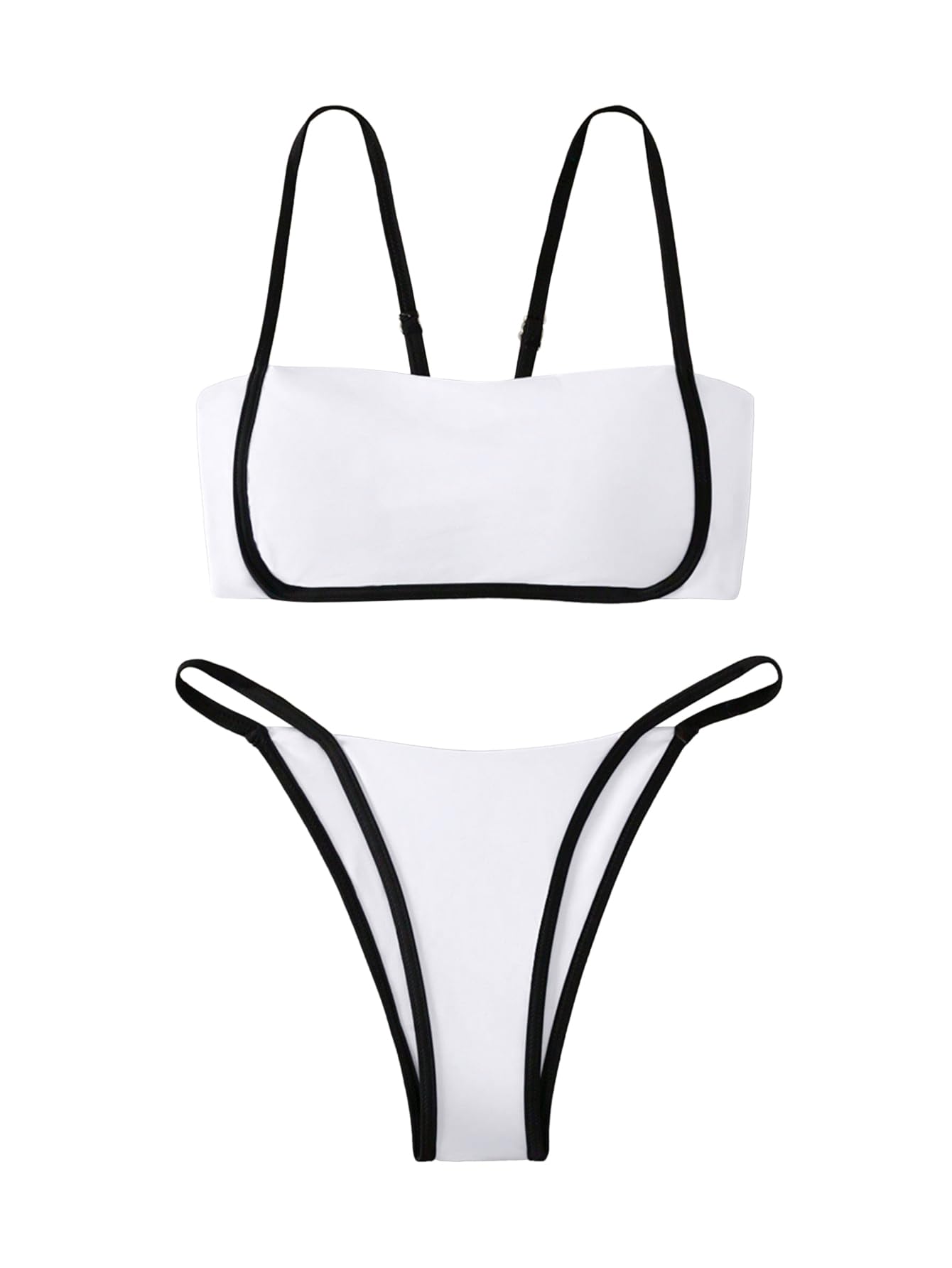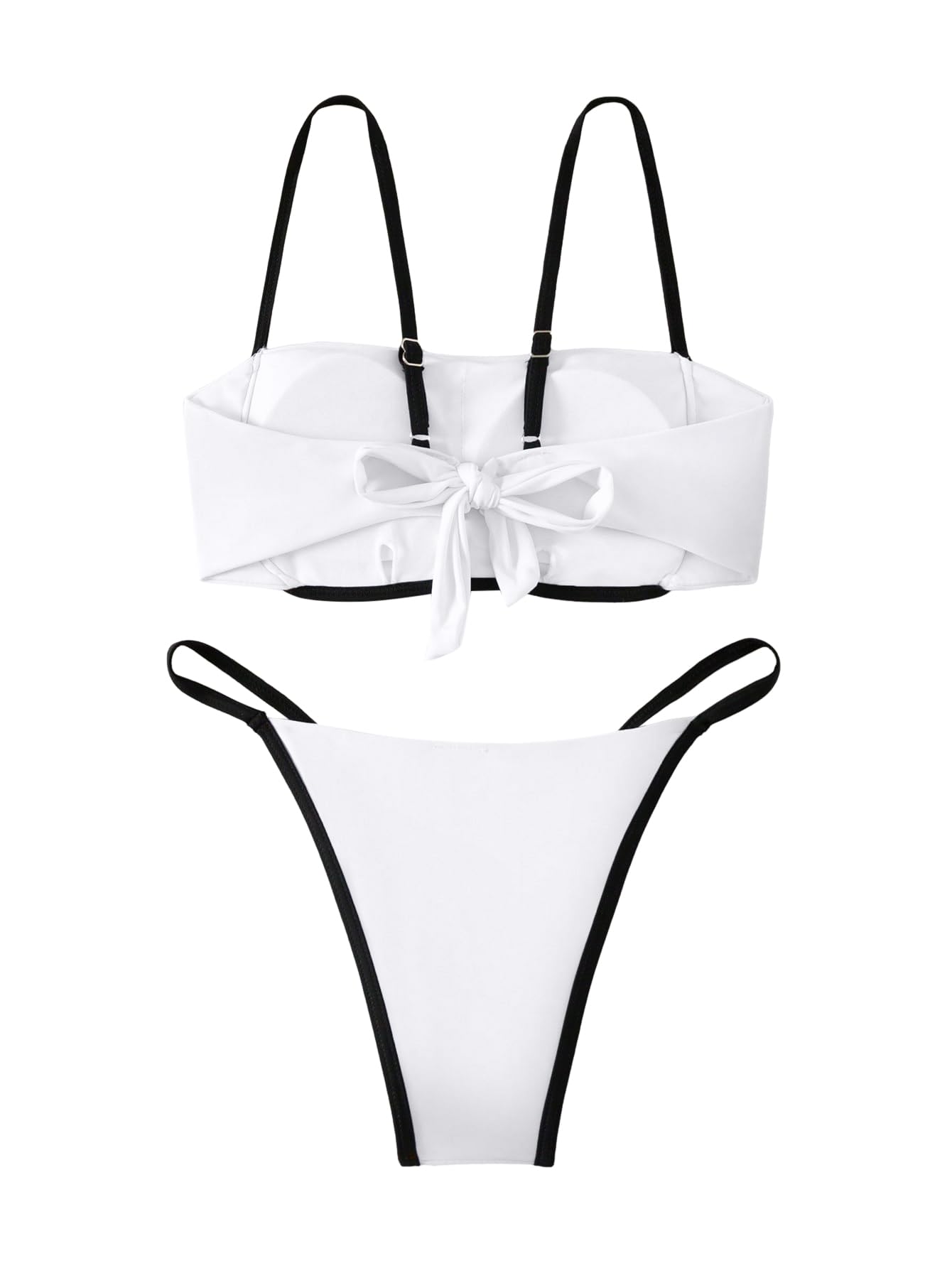 Lilosy Sexy Contrast Binding Color Block Bandeau Thong Bikini Tube Cheekly Brazilian Swimsuit Set Women Tie Back Bathing Suit White and Black Small