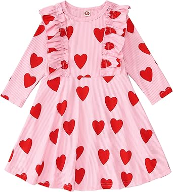 Little Girls Valentine's Day Dress Toddler Girl Long Sleeve Dresses Love Heart Outfits Princess Ruffle Twirly Skirt