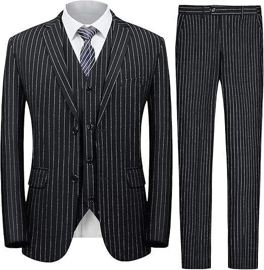 MAGE MALE MenŠ—Ès Pinstripe 3 Piece Suit Slim Fit Elegant Single Breasted Business Wedding Party Blazer Vest& Pants Set