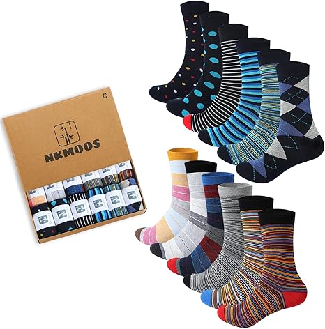 Mens Dress Socks - Colorful Socks for Men - Striped Socks 6 or 12 Pairs
