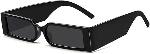 Mens Women's 90_‹_s OG Trendy Rectangle Small Thin Narrow Flat Top Sun Glasses Unisex Square Old School Designer Style Fashion Plastic Frame Shades Hip Hop Dark Black Stylish Driving Sunglasses