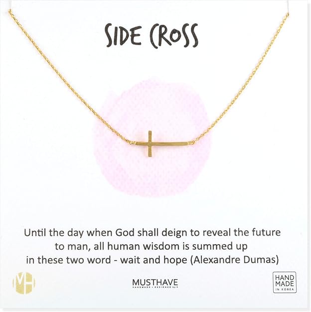 MUSTHAVE Side Cross 18K Gold Plated Necklace With Message Card, Color Gold and Silver, Anchor Chain, Best Gift Necklace, Size 16 inch + 2 inch Extender, Gift Card