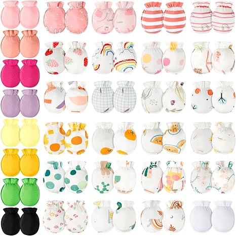 ONESING 32 Pairs Baby Mittens Baby Gloves No Scratch 0-6 Months Baby Essentials Mittens for Newborn Baby Boys Girls