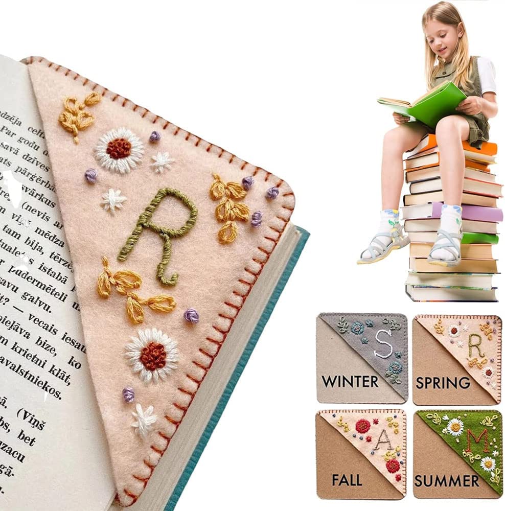 Personalized Hand Embroidered Corner Bookmark, 26 Letters Cute Flower Embroidered Corner Bookmark Embroidery Book Marker Clip for Book Lovers Bookmarks for Reading Lovers Meaningful Gift (Summer, M)