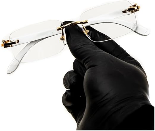 Retro Vintage Trendy Style Designer Rimless Clear Lens Rectangular Gold Frame White Wood Arm Unisex Square Frameless Men_‹_s Women Clear Tint Rectangle Hip Hop Buffs Eye Glasses