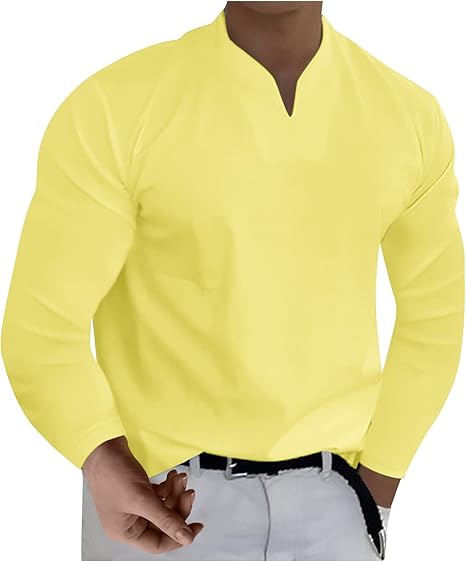 Shirts for Men, Mens Casual V Neck Tops Solid Color Long Sleeve T-Shirts Classic Tshirts Plus Size Loose Fit Shirt