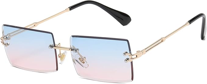 Square Sunglasses For Women Men Rimless Trendy Rectangle Sunglasses Uv Protection Retro Vintage Womens Sunglasses