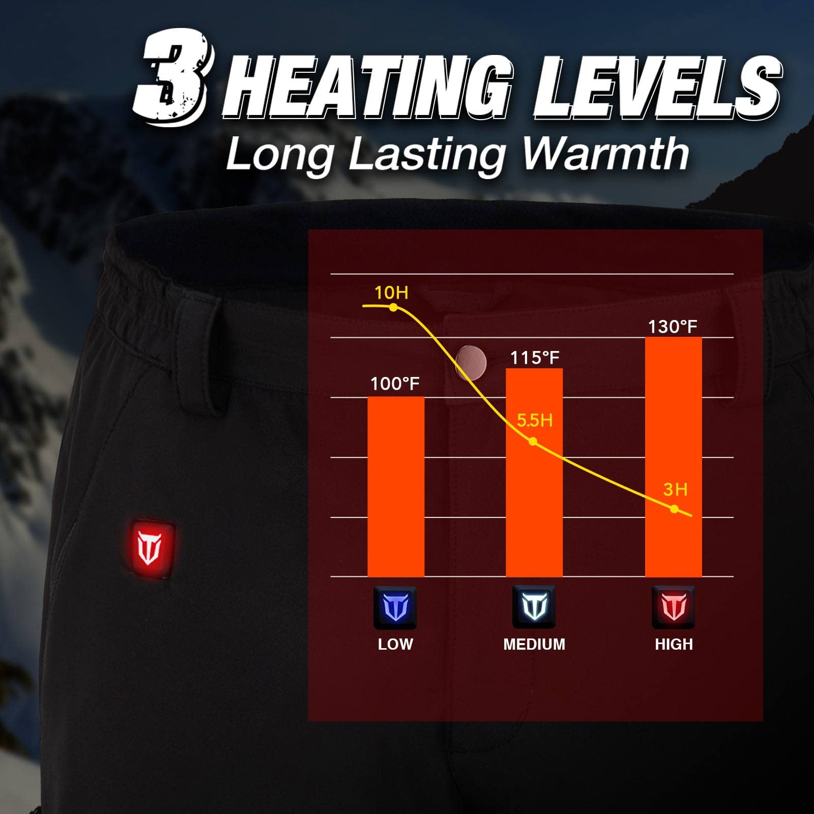TIDEWE Hunting Pants Heated for Men with Battery Pack, Water Resistant Rechargeable Heating Pants, Warm Heated Pants with Elastic Waist for Hiking Trekking Skiing Ice Fishing (Black, L)