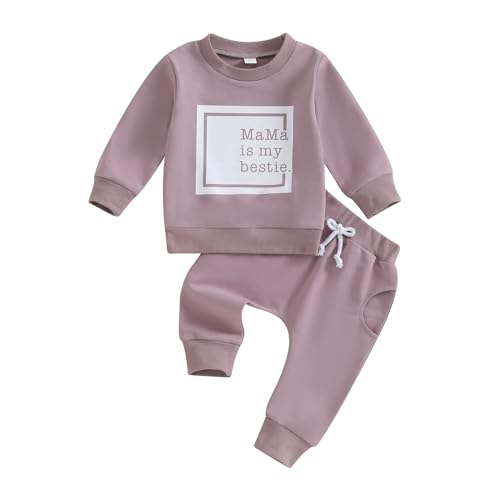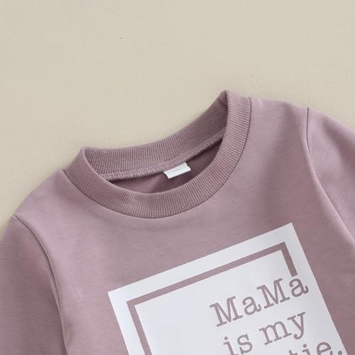 Toddler Baby Girl Clothes Long Sleeve Letter Print Sweatshirt and Stretch Jogger Pants Newborn Fall Winter Outfit (Mama is My Bestie Purple, 18-24 Months)