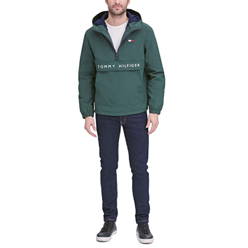 Tommy Hilfiger Men's Performance Fleece Lined Hooded Popover Jacket, Olive, Small