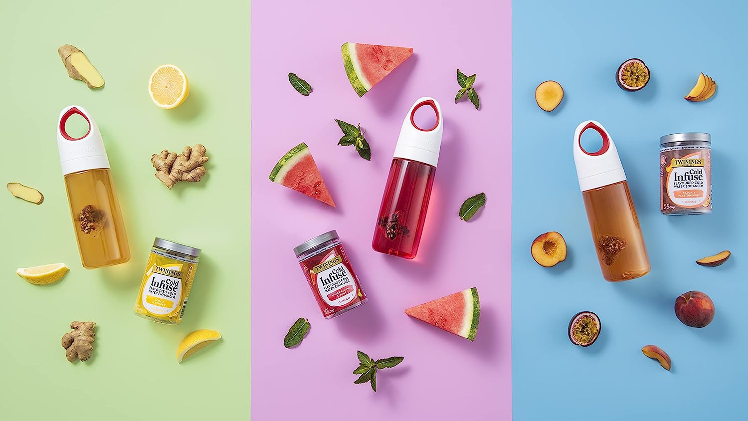 Twinings Cold Infuse Water Enhancer Tea Sampler, Strawberry-Lemon, Mango-Passionfruit, Watermelon-Mint, 12 Count (Pack of 3)