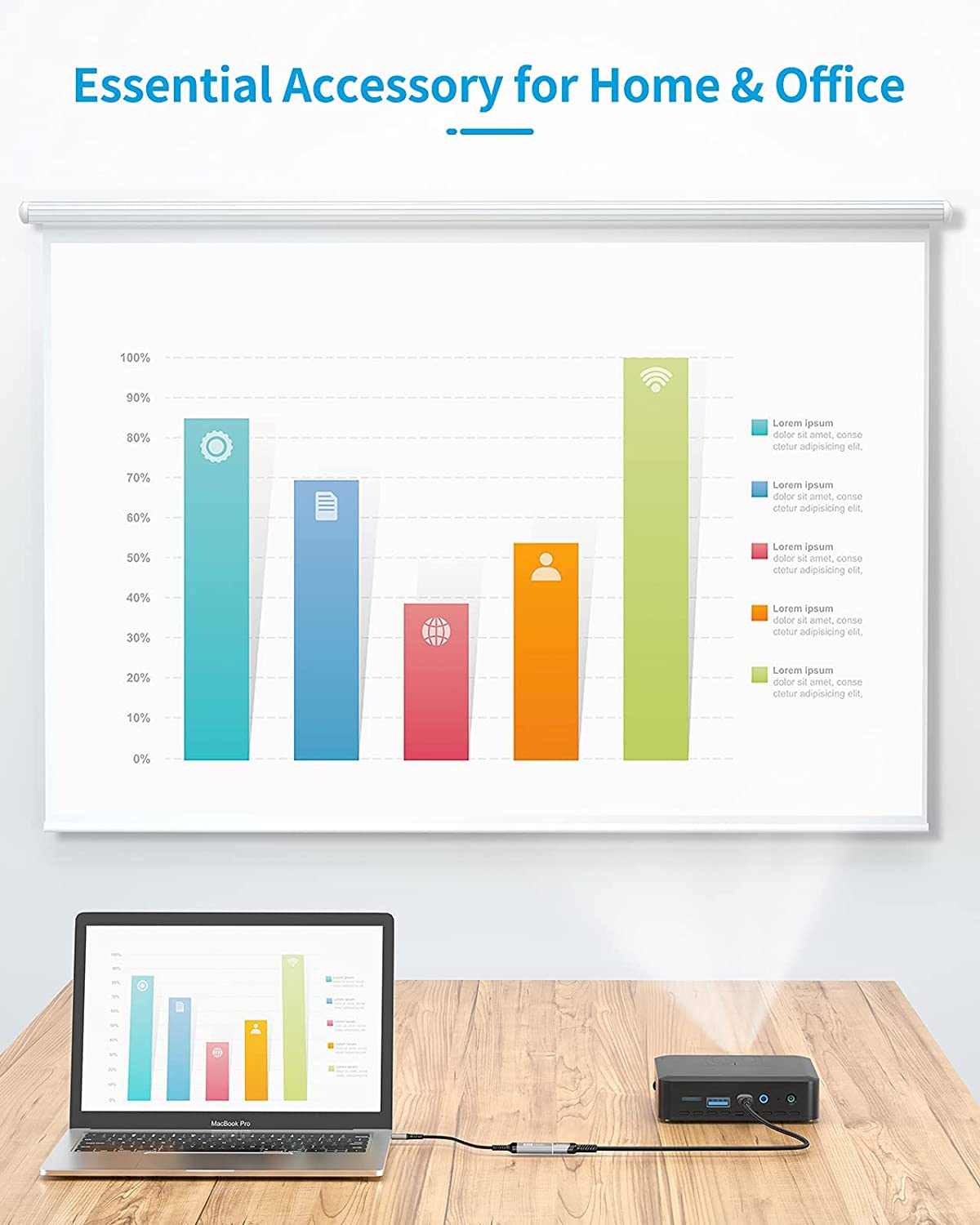 • 【Easy To Use】 No driver, no software or complicated installation required. Just use the adapter to connect the device to a projector, monitor or HDTV. You can instantly convert the USB-C port of your laptop or mobile phone to an HDMI port.