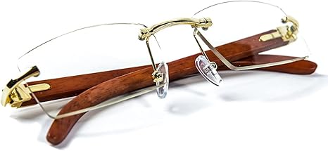 Vintage Small Retro Rimless Clear Lens Gold Frame Hip Hop Sunglasses Rectangle Men Women Frameless 90_‹_s Shades Woodgrain Arm Sun Glasses Fashion Frameless Square Clear Tinted Glasses