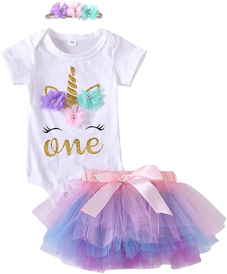 XIFAMNIY Baby Girl Half 1st 2nd Birthday Outfit Newborn 1 Year Unicorn Onesie Tutu Dress Headband Legging Socks‰Û_