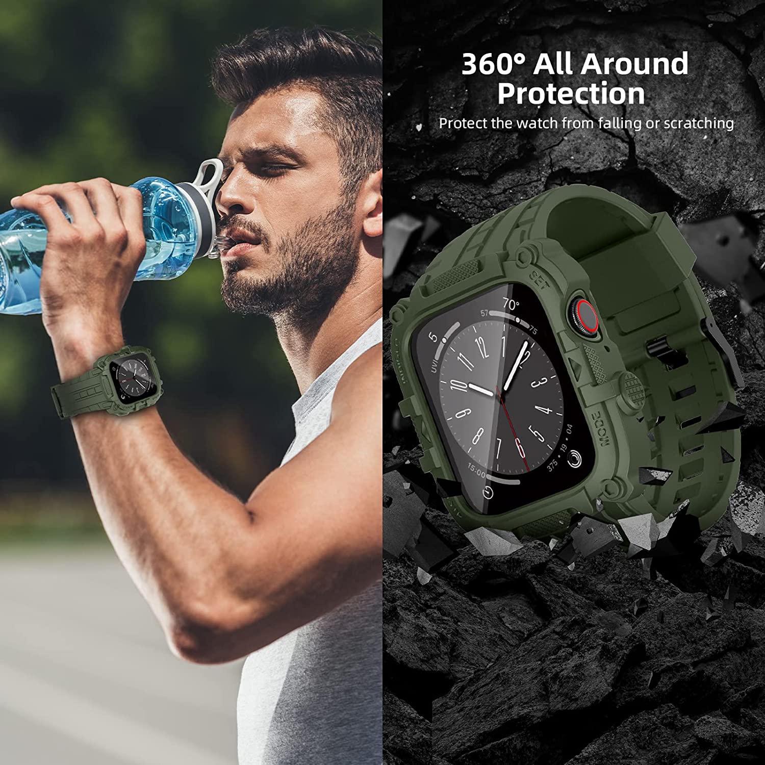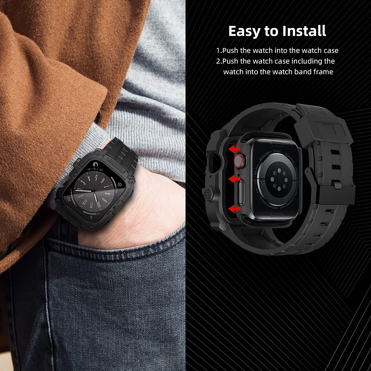 • Easy to Install / Removal: Snap-in design makes it fast and easy to install or remove and never fall off. Easy access all functions of the watch with precise cutouts for button and crown. Our package included: 1 x Watch Band + 2 x Watch Case with Screen Protector and clean sets for iWatch 44mm (No Watch Included).