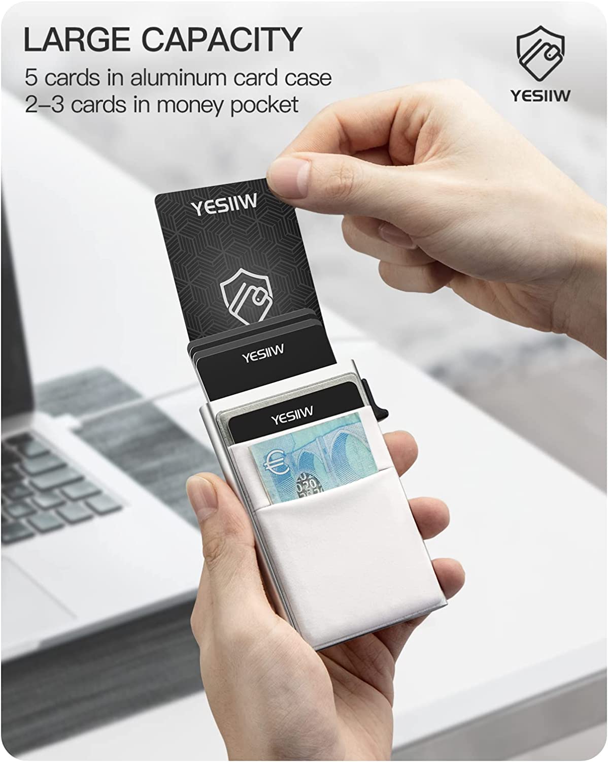 • ? QUICK ACCESS & LARGE CAPACITY - Fumbling through your popup wallet should be a thing of the past. Our signature automatic mechanism ejects your cards at the flick of a switch. Hold 5 cards in pop up card case. 2-3 cards & bills available for 2 extra slots, the actual capacity depends on the card thickness.