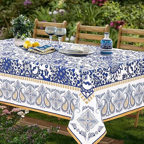 Yinhua Blue and White Table Cloth Rectangle Table 60 X 120 Inch, Table Clothes for 6 Foot Rectangle Tables, Outdoor Tablecloth for Parties, Waterproof Fabric Oblong Polyester Tablecloths