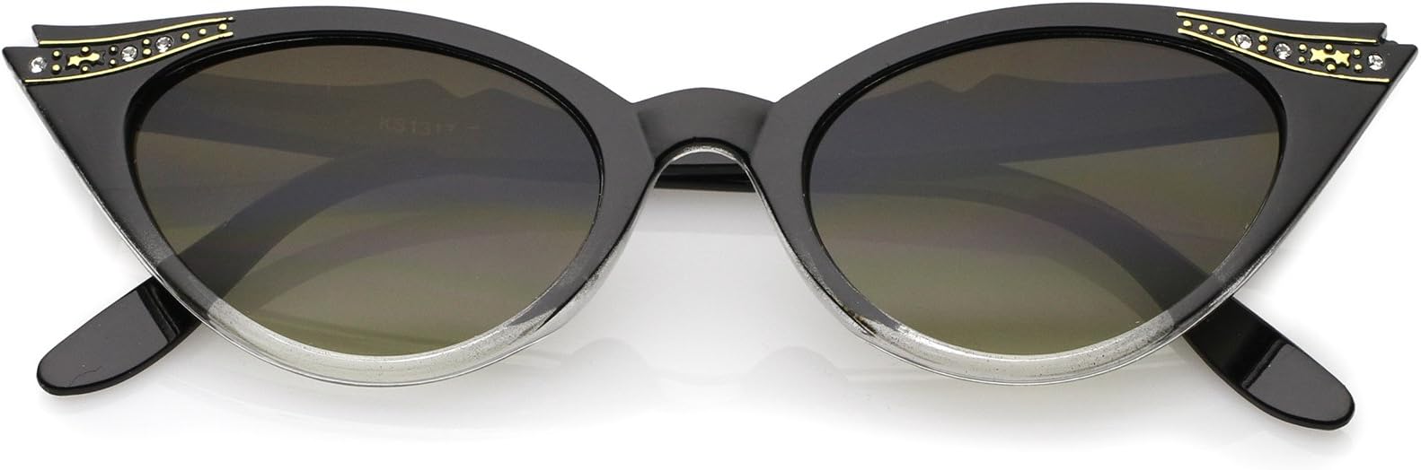 zeroUV 50s Vintage Cat Eye Sunglasses for Women UV400 Embellished with Rhinestones, Pinup Girl & Rockabilly Accessories 50mm